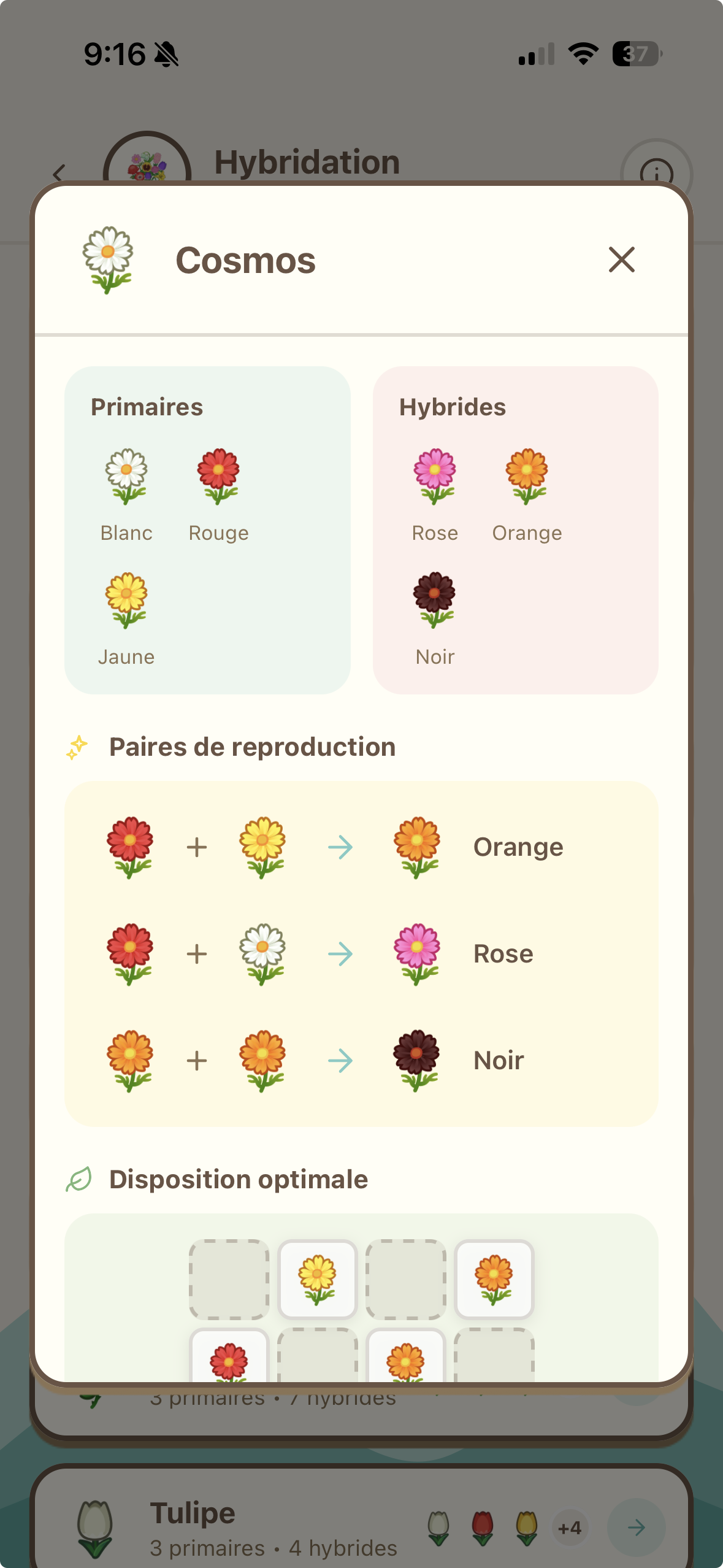 Tous les croisements de fleurs avec les dispositions optimales pour obtenir des hybrides rares.